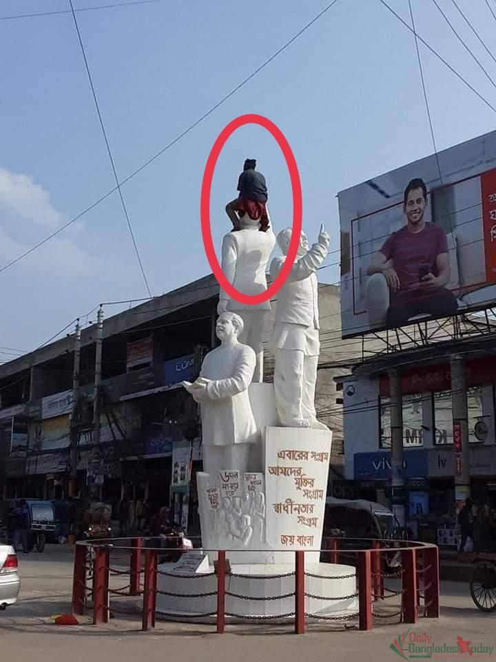 পুলিশ জানায়, দুপুর সাড়ে ৩ টার দিকে শহরের জনাকীর্ণ এলাকা পাঁচ রাস্তা মোড়ে নির্মিত বঙ্গবন্ধুর ভাস্কর্য বেয়ে ওপরে উঠে মধ্য বয়সী ওই ব্যক্তি। ম্যুরালের ওপরে উঠে সে উন্মত্ত আচরণ করছিলো।